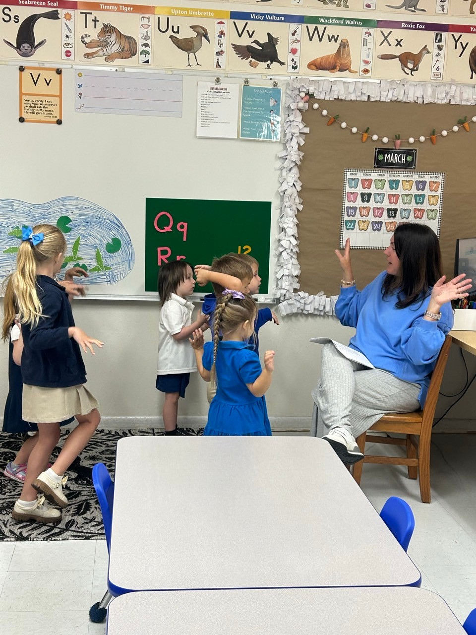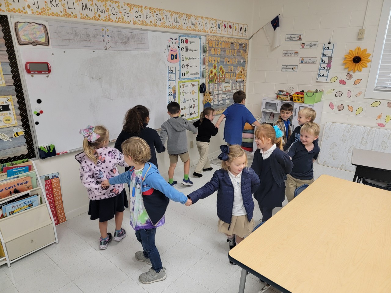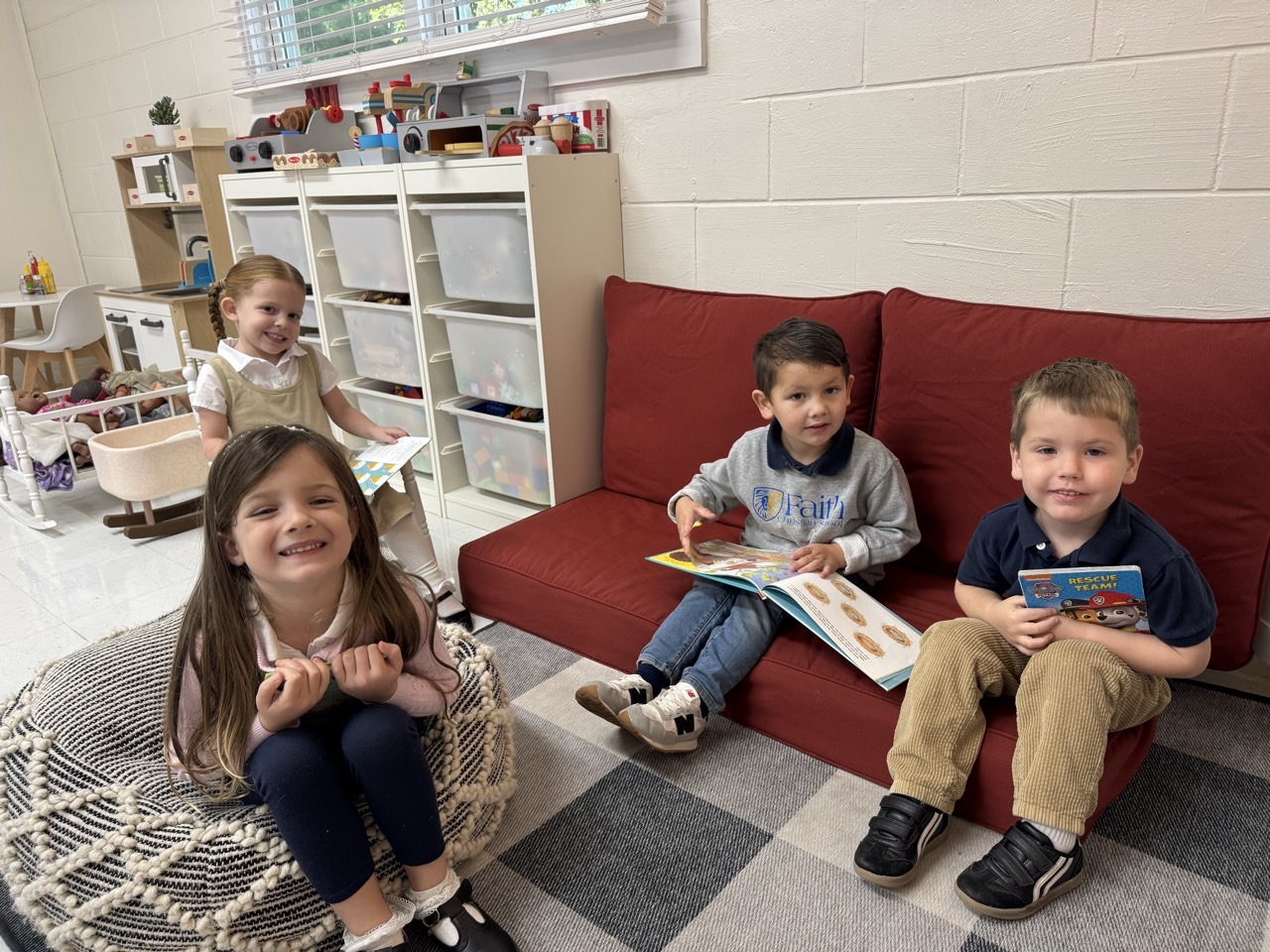 Our K-4 program builds upon the strong beginning established in Foundations in Faith Pre-K by preparing students for a successful transition into kindergarten. In a nurturing, Christ-centered environment, children continue developing important early literacy, math, and social skills through a balance of hands-on learning, structured activities, and play.